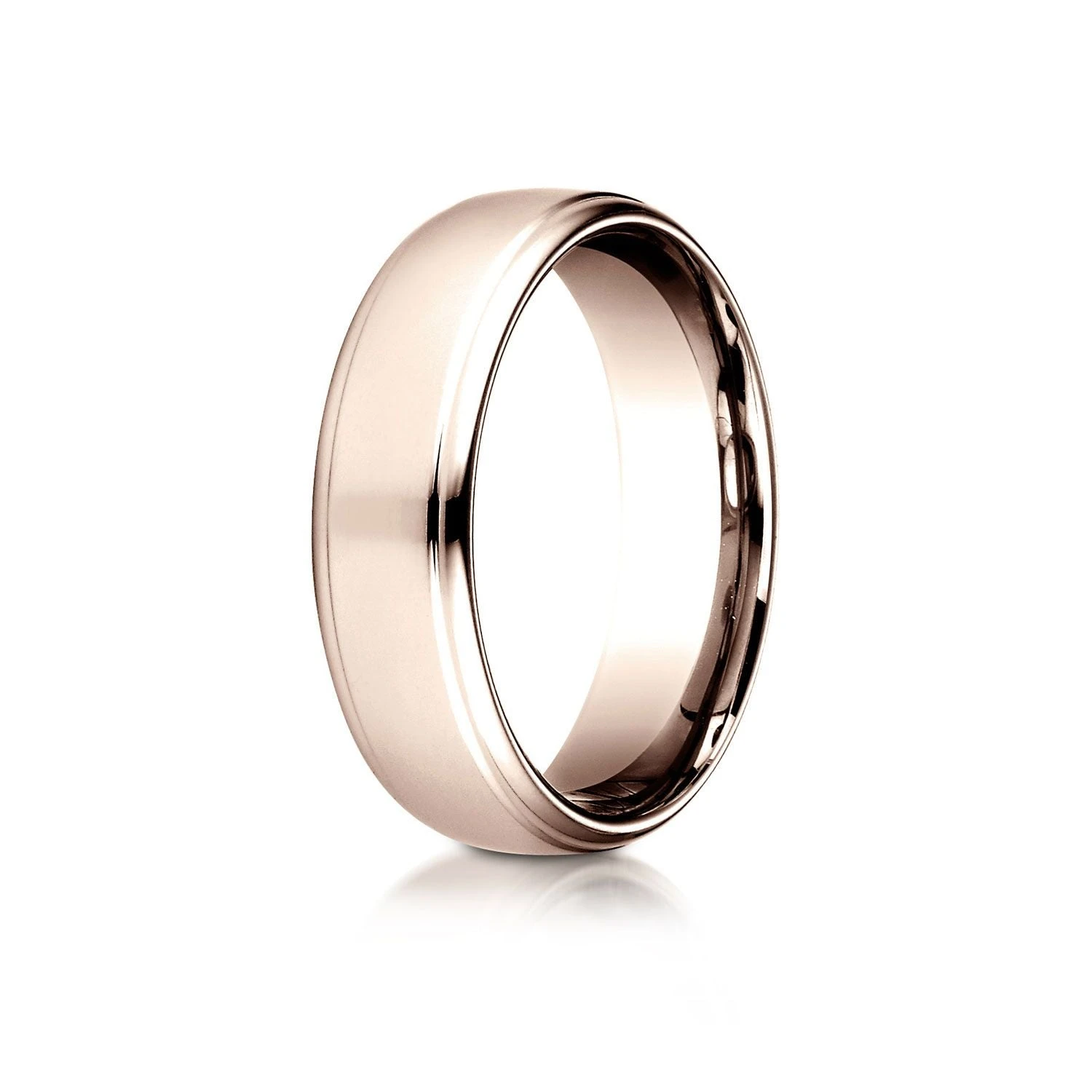 This Elegantly Simple 14 Karat Rose Gold 6.5mm Comfort-fit Carved Design Band Features A Drop Edge And High Polish Finish.