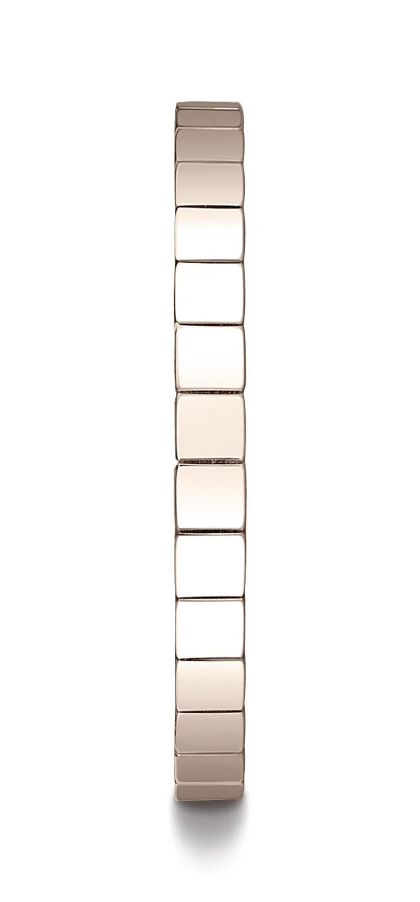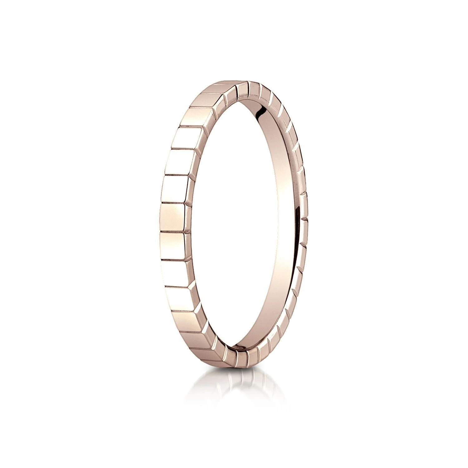 This Unique 14 Karat Rose 2mm Carved Band Features A High Polished Square Design.
