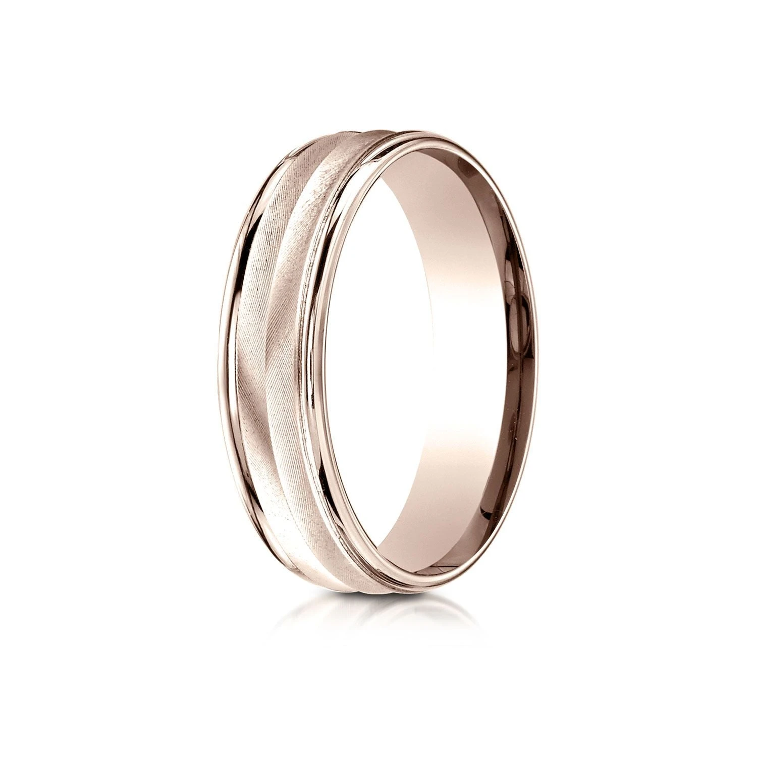 This 14 Karat Rose 6mm Comfort-fit Carved Design Band Features An Intricate Chevron Design With A High Polished Round Edge For A Look Of Modern Sophistication.