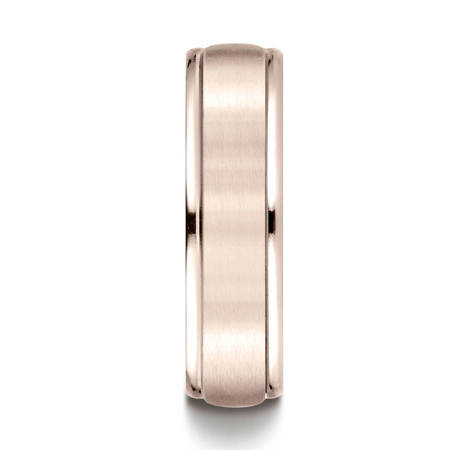 This 14 Karat Rose 6mm Comfort-fit Carved Design Band Features A Satin Finish With A High Polished Round Edge For Noticeable Style.