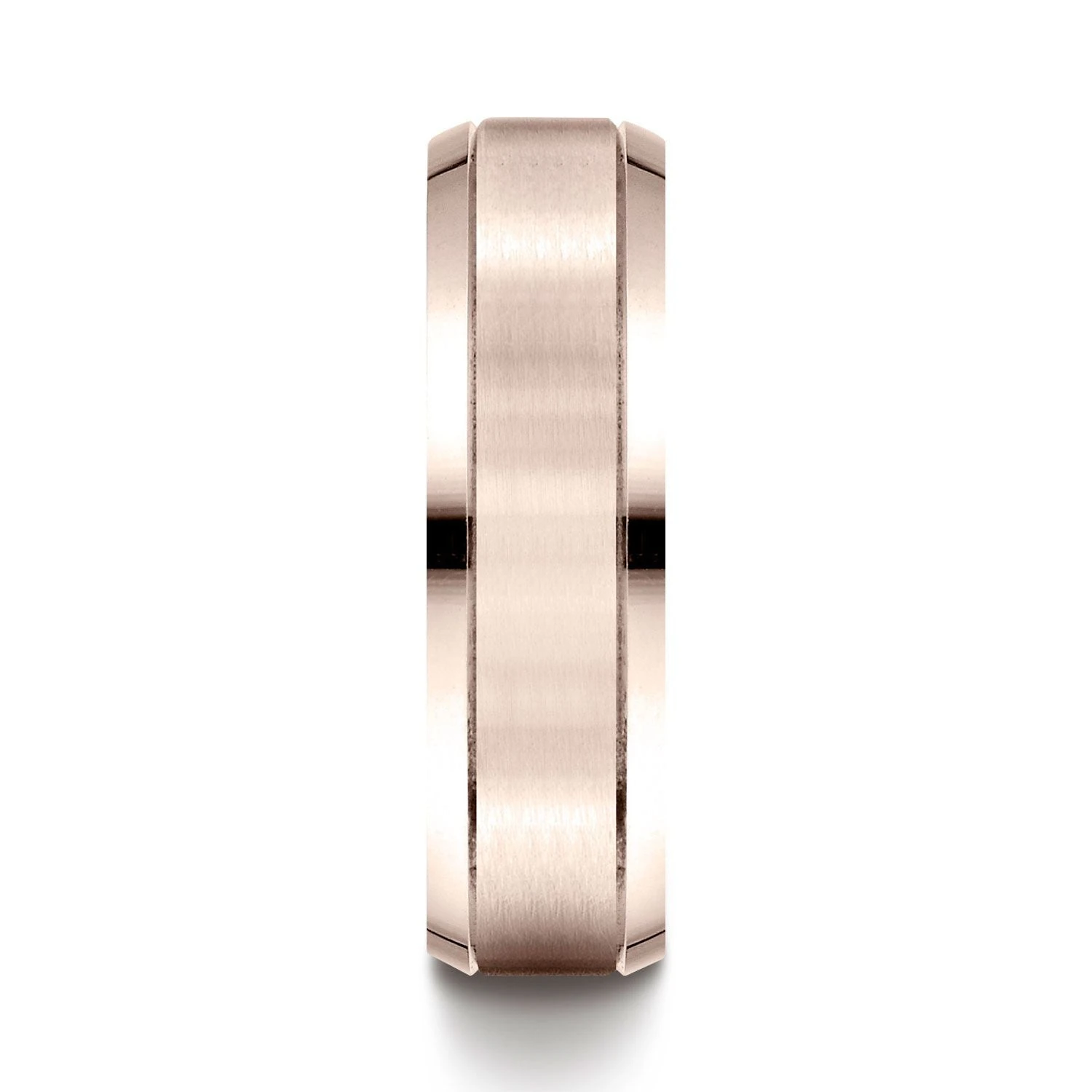 This Unique 14 Karat Rose 6mm Comfort-fit Satin-finished Carved Design Band Features Center Cuts Along A High Polished Beveled Edge.