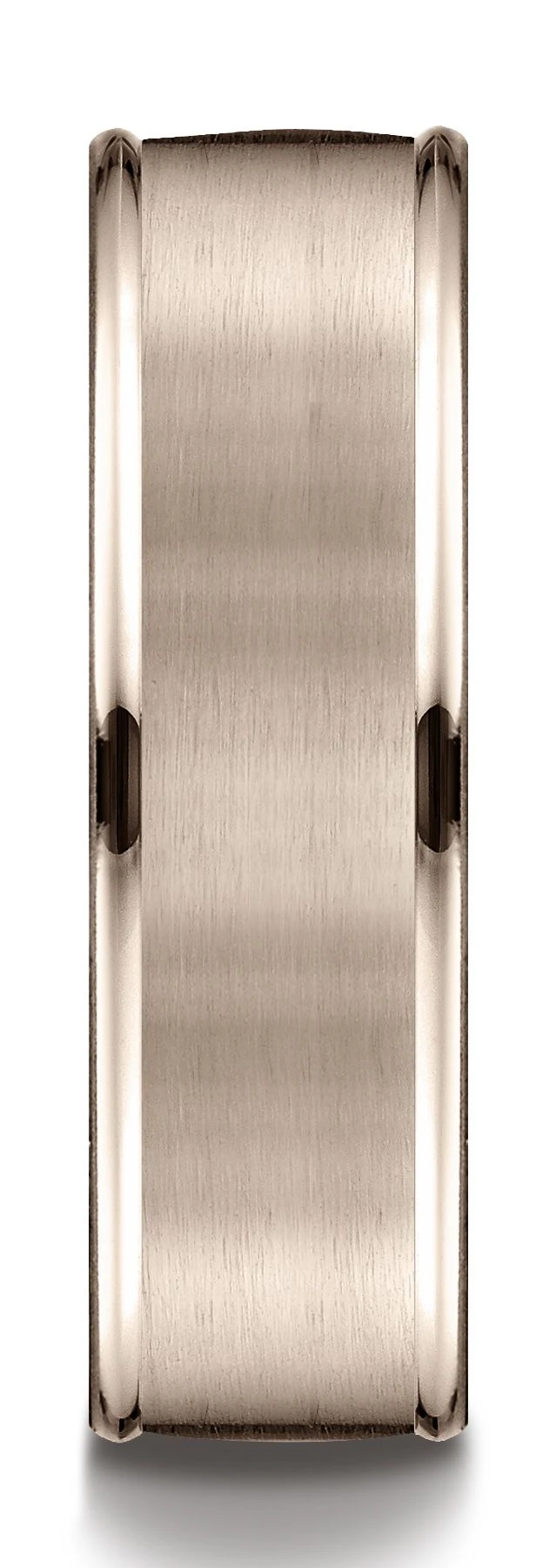 This 14 Karat Rose 7mm Comfort-fit Carved Design Band Features A Satin Finish With A High Polished Round Edge For Noticeable Style.