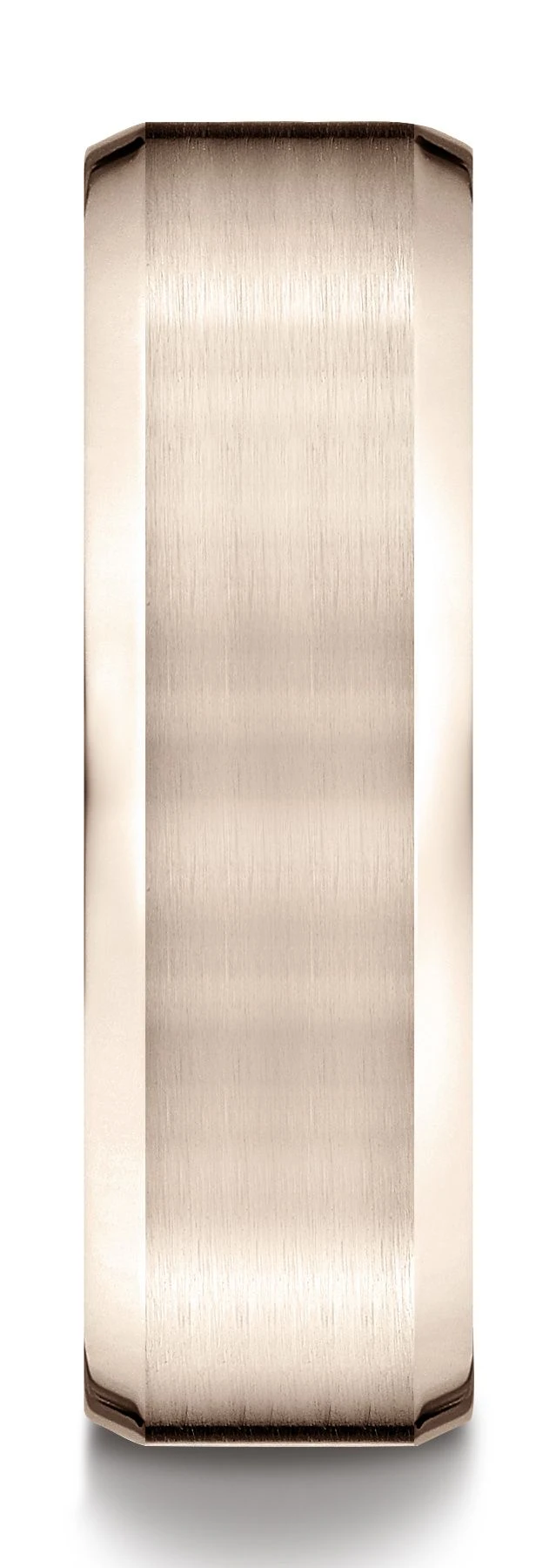 This 14 Karat Rose 7mm Comfort-fit Satin-finished Carved Design Band Features A High Polished Beveled Edge For A Perfect Balance Of Style And Class.