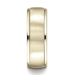 14k Yellow Gold 7mm Comfort-fit Satin-finished High Polished Beveled Edge Carved Design Band