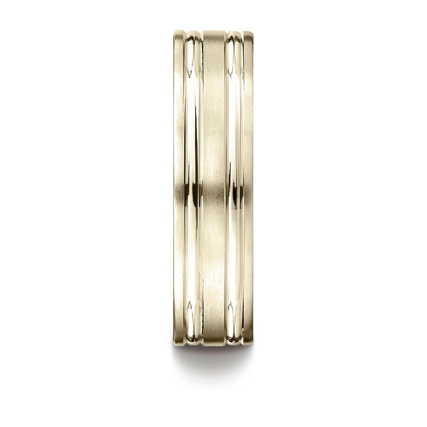This Incredible 18 Karat Yellow 6mm Comfort-fit Satin-finished Carved Design Band Features Two High Polished Parallel Center Grooves For A Continuous Flow Of Style.
