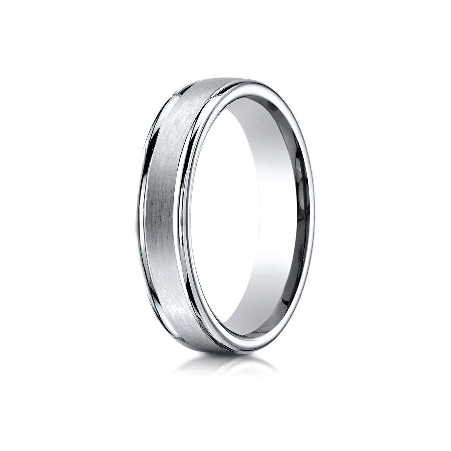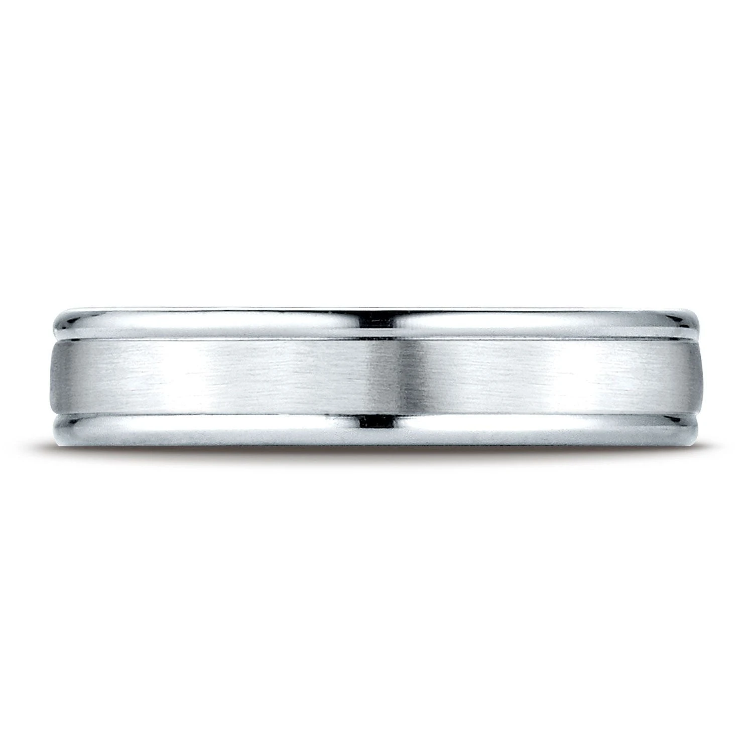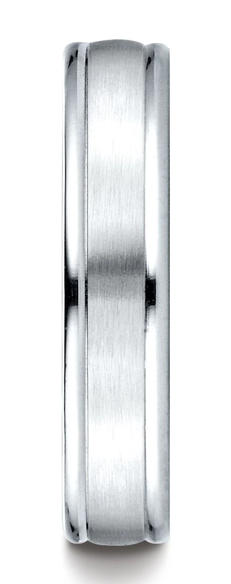 This Platinum 4mm Comfort-fit Carved Design Band Features A Satin Finish With A High Polished Round Edge For Noticeable Style.