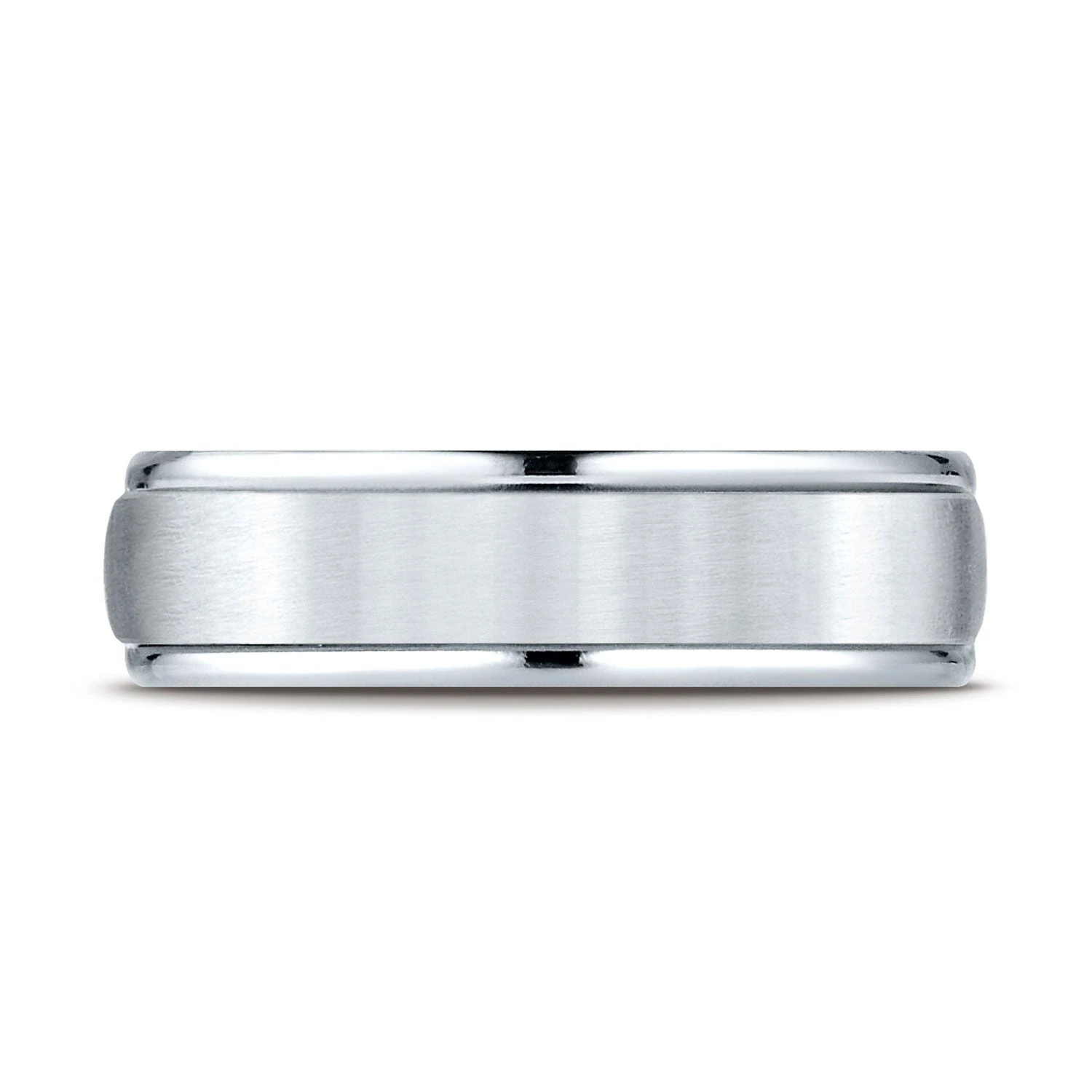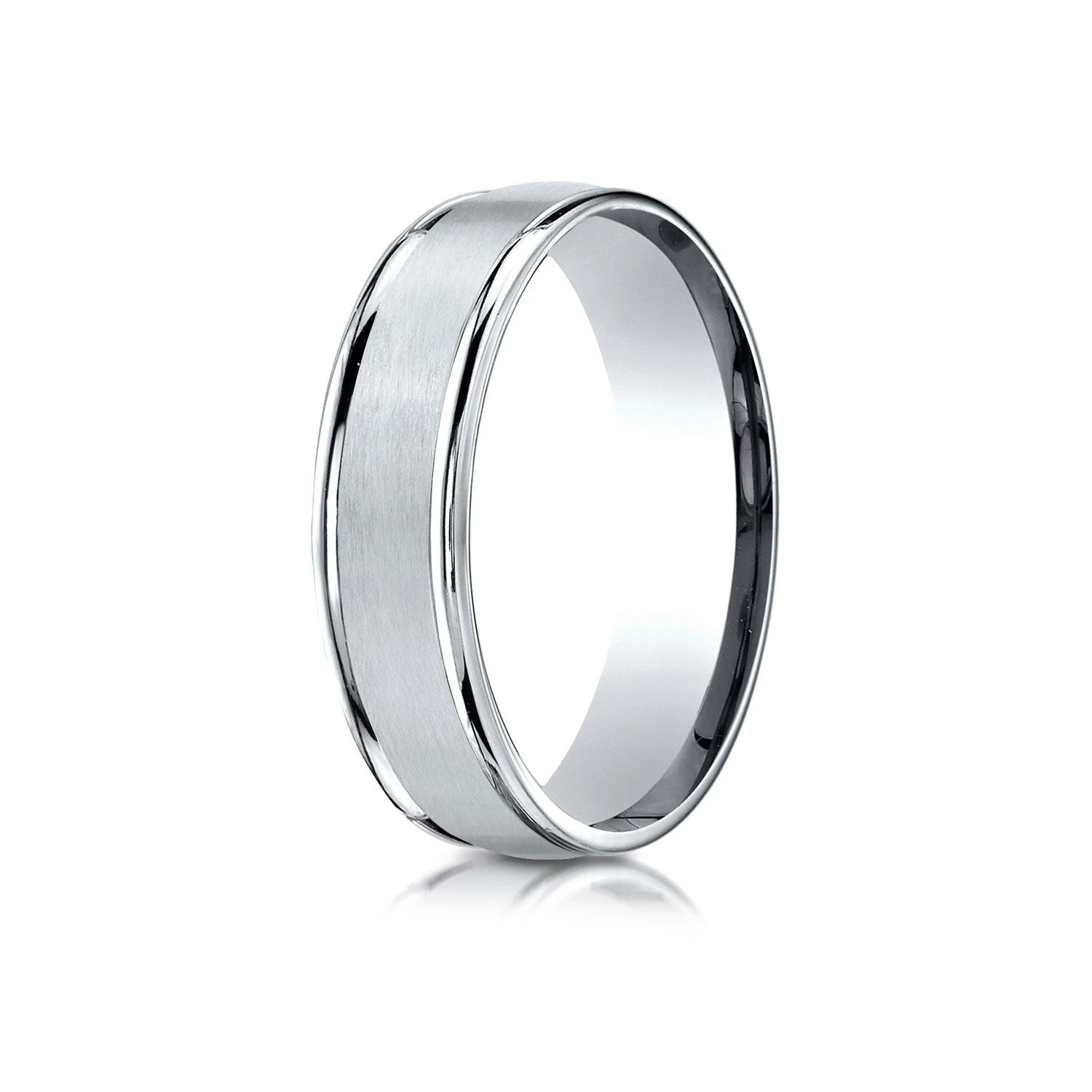 This Platinum 6mm Comfort-fit Carved Design Band Features A Satin Finish With A High Polished Round Edge For Noticeable Style.