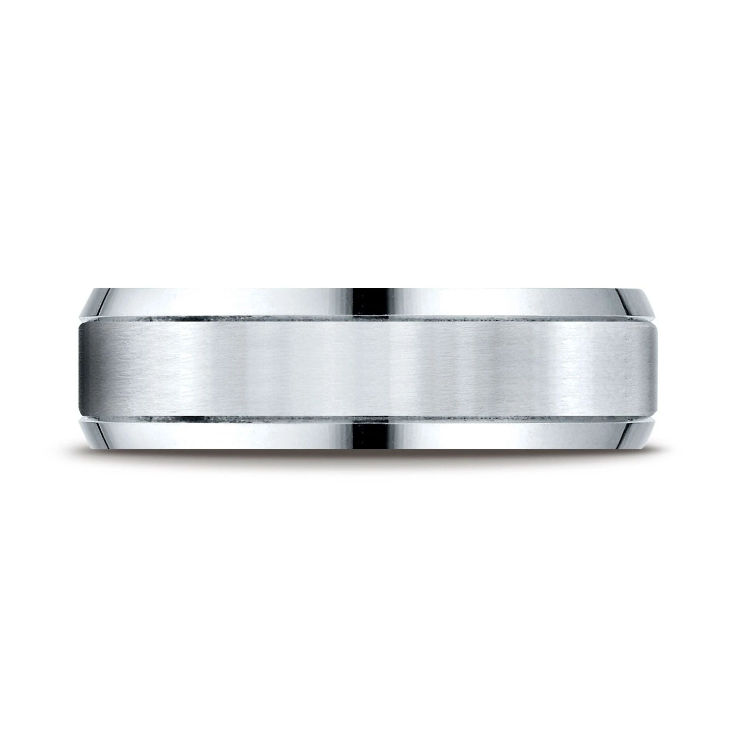 Platinum 6mm Comfort-fit Satin-finished High Polished Center Trim And Round Edge Carved Design Band