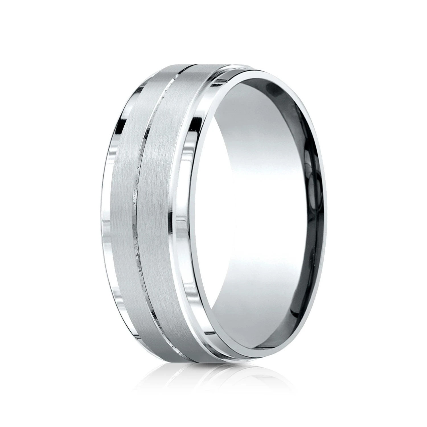Be the first to review “Platinum 8mm Comfort Fit Drop Bevel Satin Finish Center Design Band” Cancel reply
