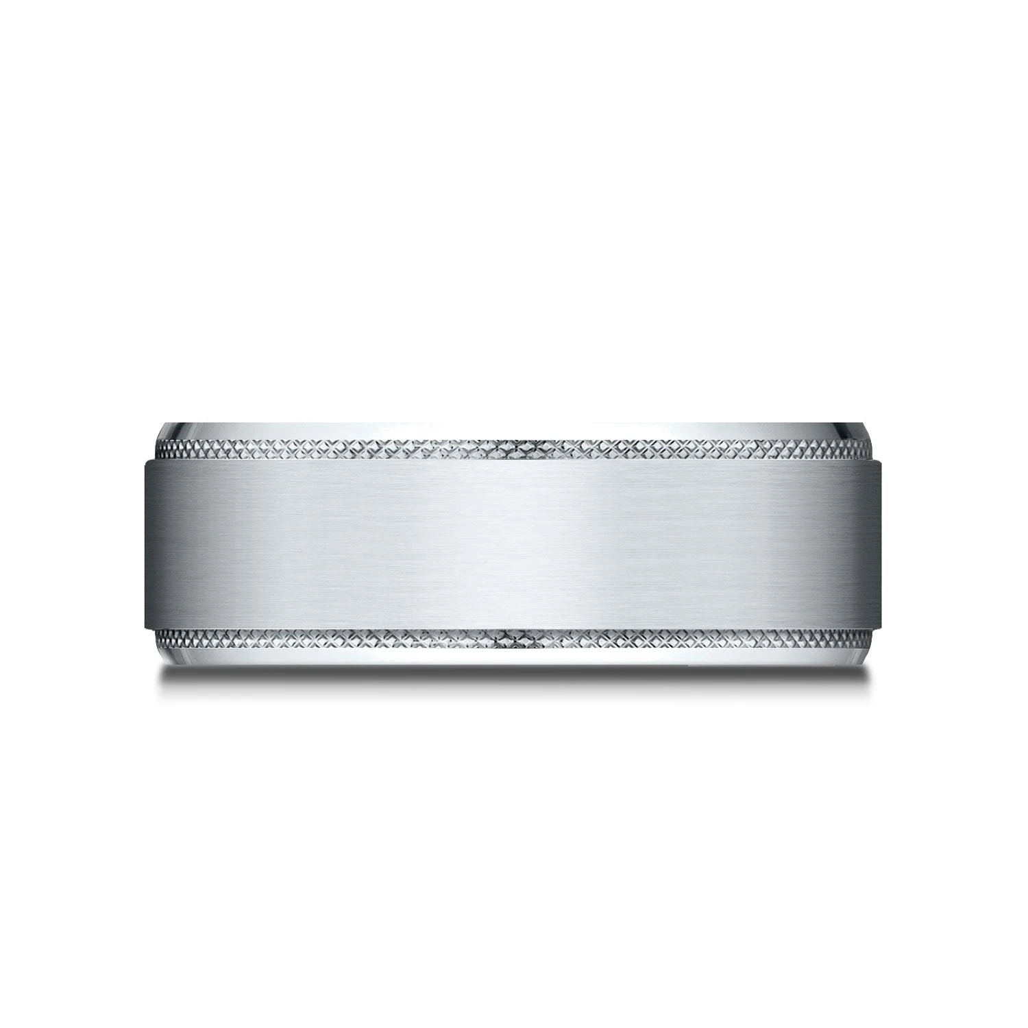 Be the first to review “Platinum 8mm Comfort Fit Knurled Drop Bevel Satin Finish Design Band” Cancel reply