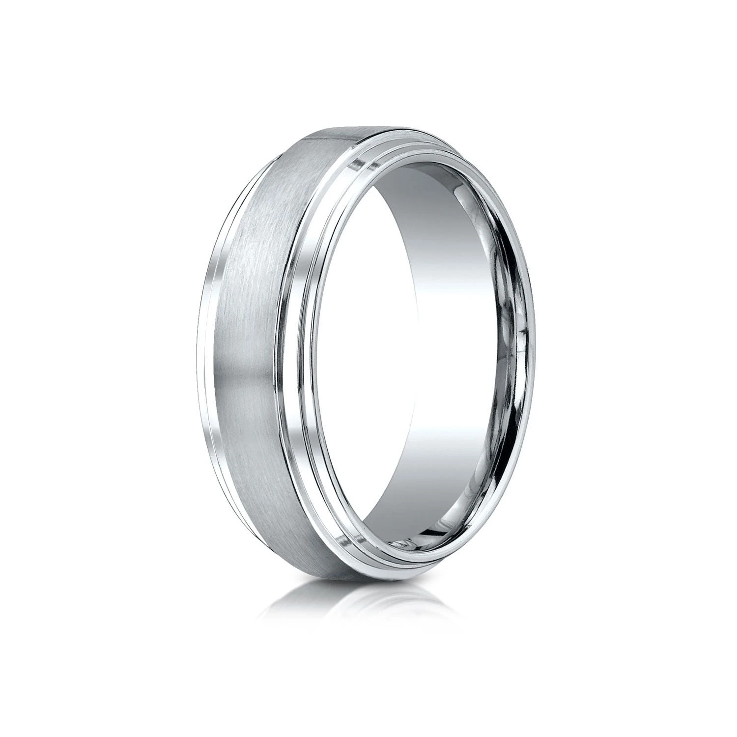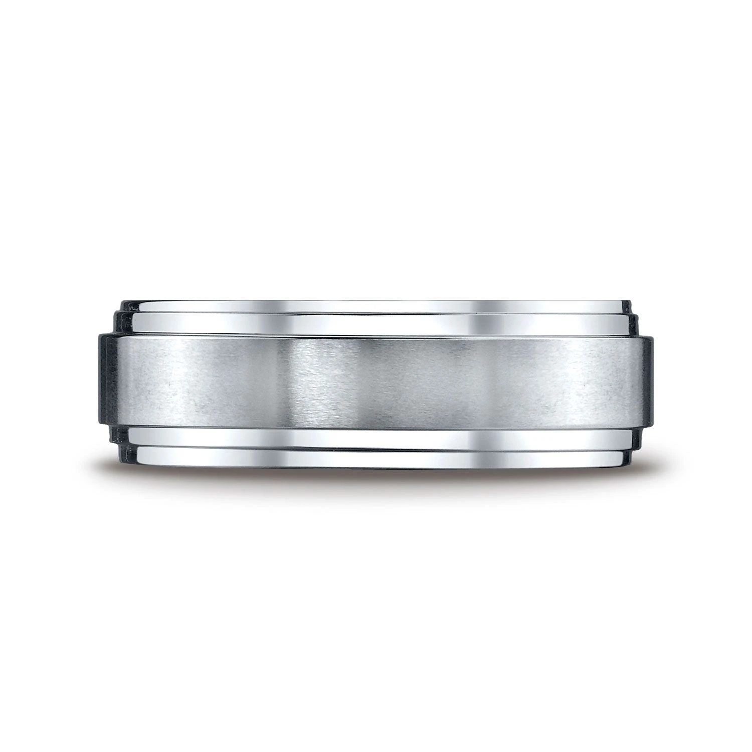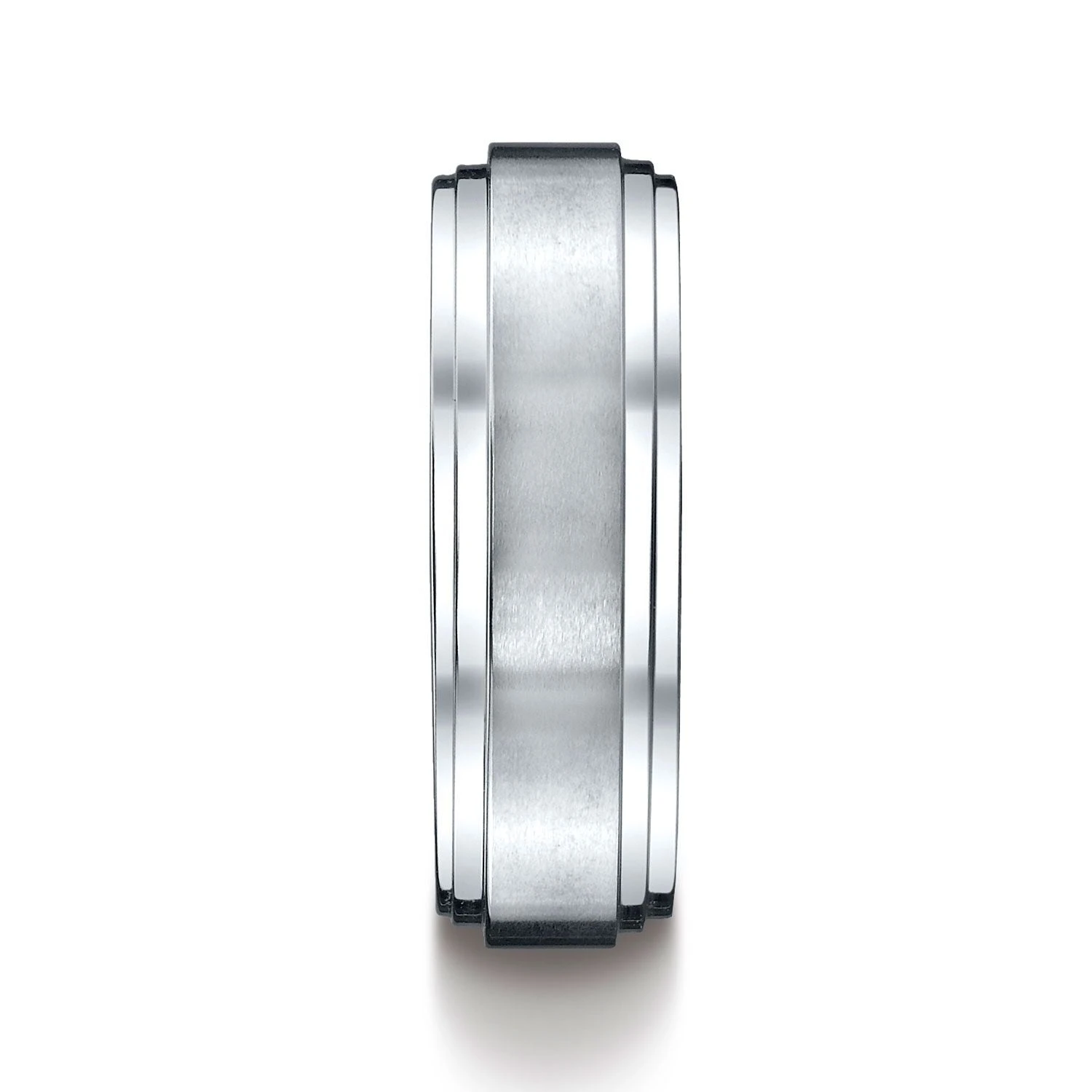 This Platinum 8mm Comfort-fit Satin-finished Step Edge Carved Design Band Offers A Classic Look, But With A Modern Flat Profile.