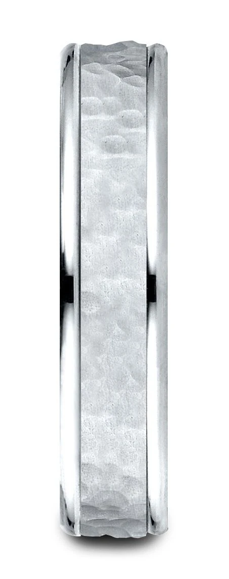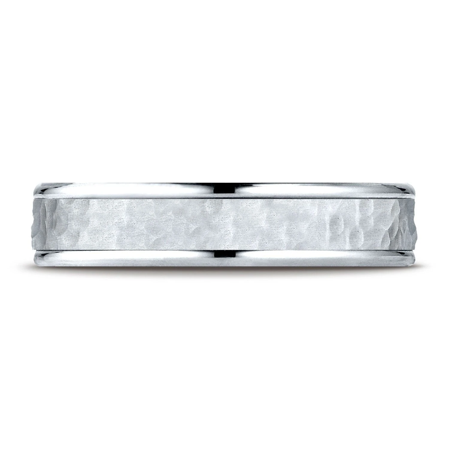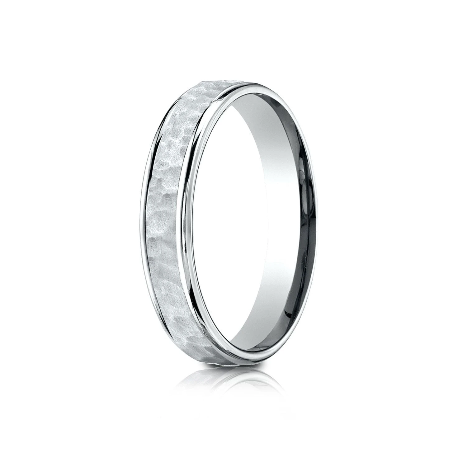 This Ultra Sophisticated Platinum 4mm Comfort Fit Band Features High Polish Edges And A Hammered Center
