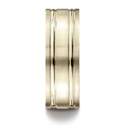 14k Yellow Gold 8mm Comfort-fit Wire Brush Finish High Polished Round Edge Carved Design Band