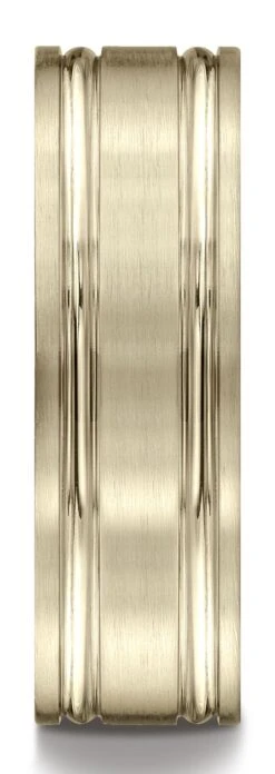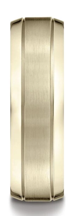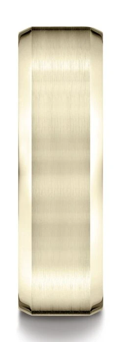 14k Yellow Gold 7mm Comfort-fit Satin-finished High Polished Beveled Edge Carved Design Band